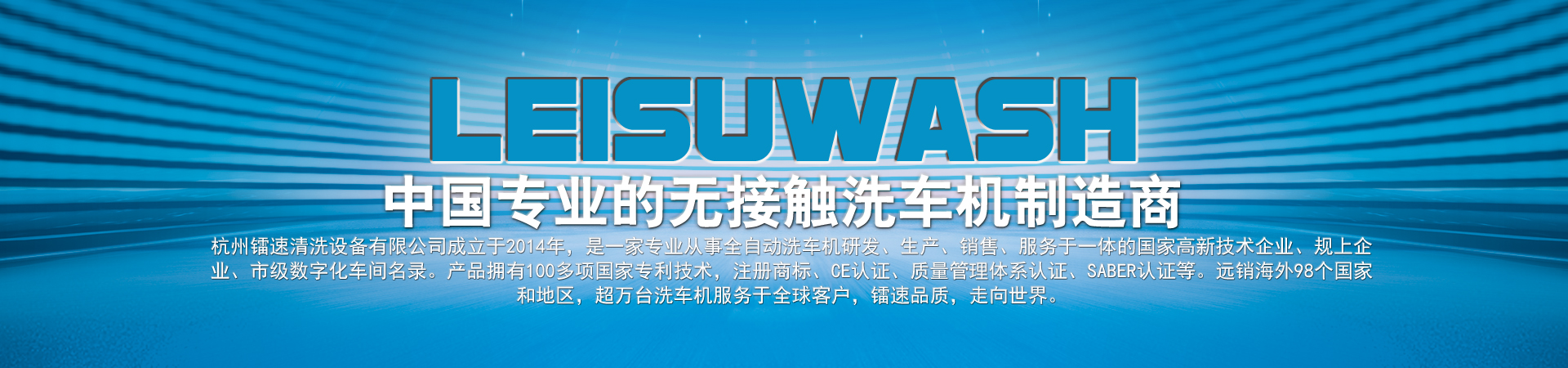 杭州鐳速清洗設(shè)備有限公司成立于2014年,是一家專業(yè)從事自動(dòng)洗車機(jī)研發(fā)、生產(chǎn)、銷售、服務(wù)于一體的國家高新技術(shù)企業(yè),注冊(cè)資金2000萬元。匯聚了一批專業(yè)的技術(shù)創(chuàng)新團(tuán)隊(duì),與時(shí)俱進(jìn),不斷創(chuàng)新,研發(fā)生產(chǎn)出質(zhì)量過硬、技術(shù)領(lǐng)先的全智能電腦洗車設(shè)備,是國內(nèi)集洗護(hù)一體全自動(dòng)汽車清洗系統(tǒng)的開拓者和領(lǐng)跑者。 鐳速公司一步一個(gè)腳印,一步一個(gè)臺(tái)階,通過不斷的努力和鉆研,厚積薄發(fā),從一家名不經(jīng)傳的小企業(yè),走到今天,成為中國洗車機(jī)行業(yè)出口最多的企業(yè)。鐳速品質(zhì)正逐步成為中國洗車機(jī)行業(yè)的高品質(zhì)代名詞,真正進(jìn)入國際一線洗車機(jī)行列,打造贏得全球信賴的中國品牌!